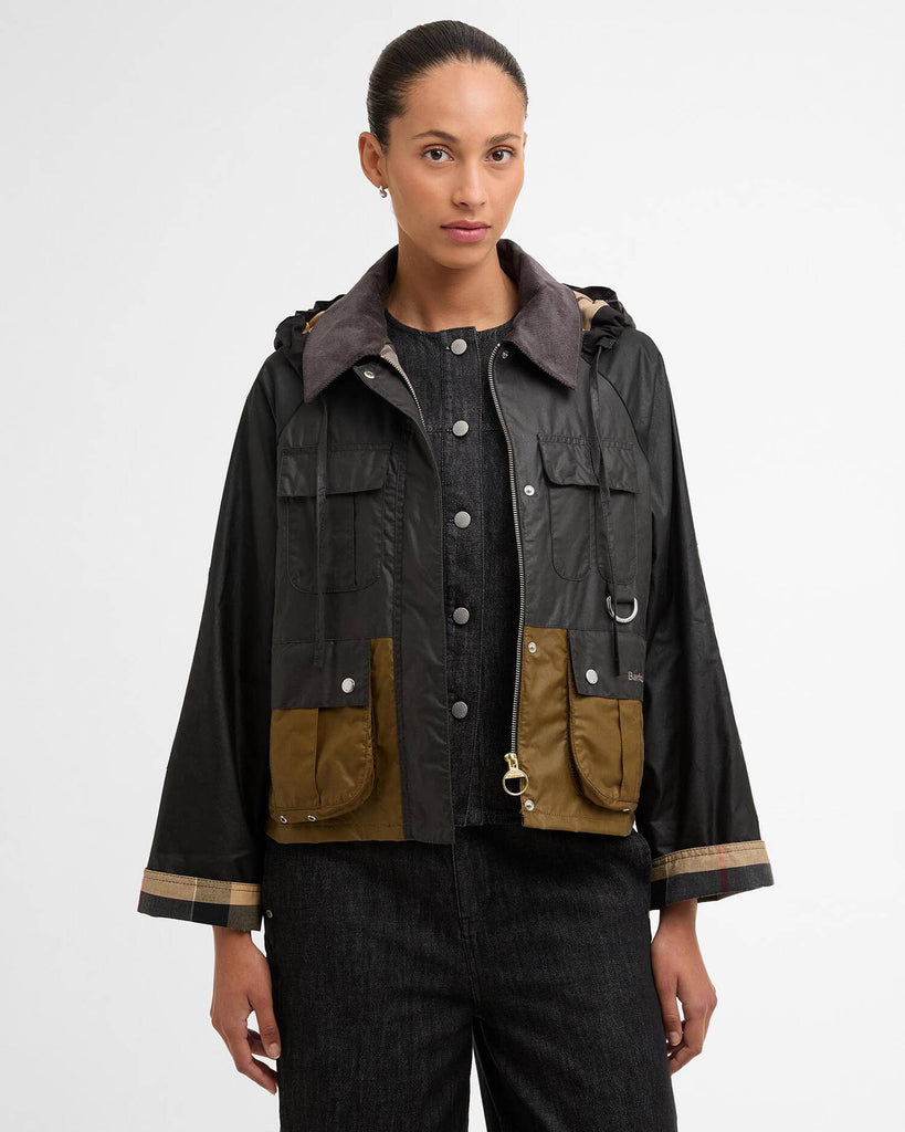 La giacca cerata Liza di Barbour reinterpreta in chiave moderna un capo classico dallo stile heritage. Ispirata all'iconico modello Spey d’archivio, questa giacca corta cerata presenta numerose tasche e un anello a D in metallo sul petto, dettagli che strizzano l’occhio ai nostri capi creati apposta per i pescatori e gli amanti dell’outdoor. Il capospalla è dotato di toppe sui gomiti in tessuto per una maggiore durevolezza e di un cappuccio rimovibile per offrirti la massima versatilità. La parte interna, il corpo, il cappuccio e i polsini sono foderati con il nostro iconico tartan per regalarti un calore impareggiabile e un tocco di stile senza tempo. Connubio perfetto di tradizione e stile utility moderno, la giacca Liza è un capospalla affidabile pensato per accompagnarti durante le avventure di tutti i giorni.