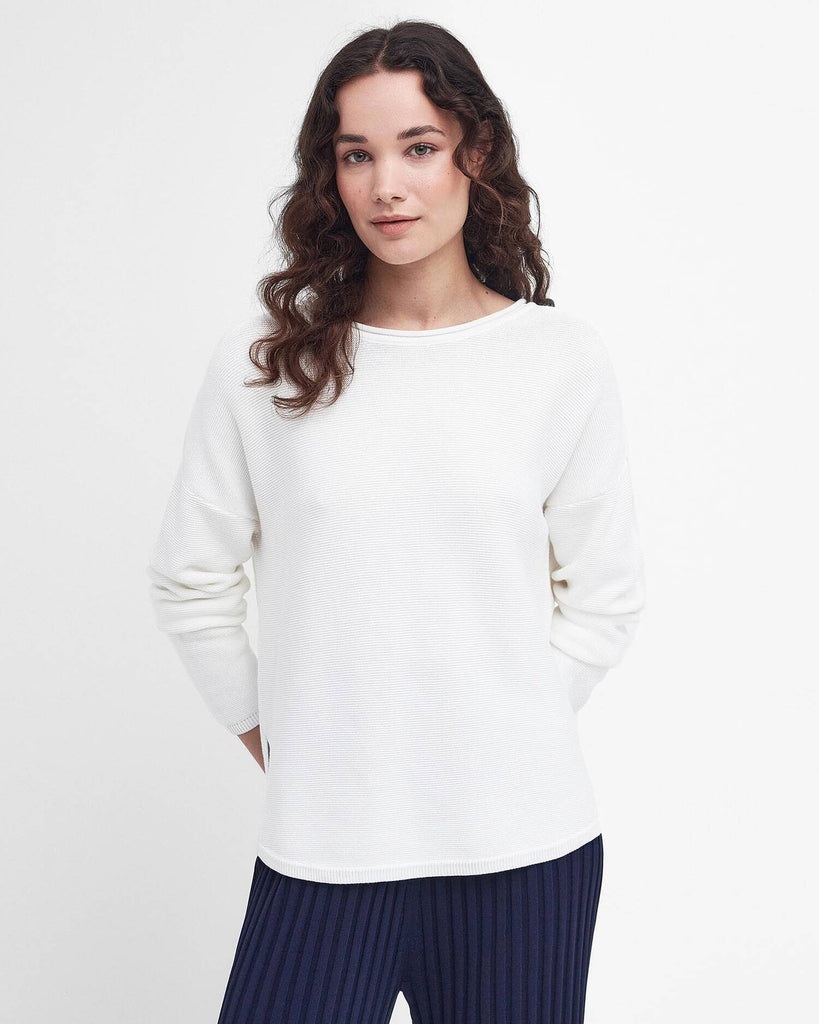 Un capo versatile ideale per la donna moderna: il maglione lavorato Marine di Barbour si distingue per il suo taglio leggermente corto in linea con i look più contemporanei. Questo pratico must-have in cotone presenta delle impunture in rilievo su tutto il capo, oltre a spalle scivolate e spacchetti laterali in corrispondenza dell'orlo, che gli conferiscono una vestibilità rilassata.