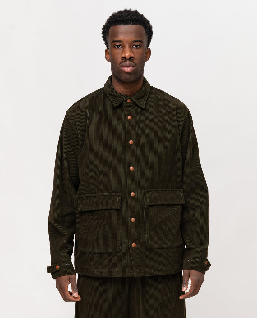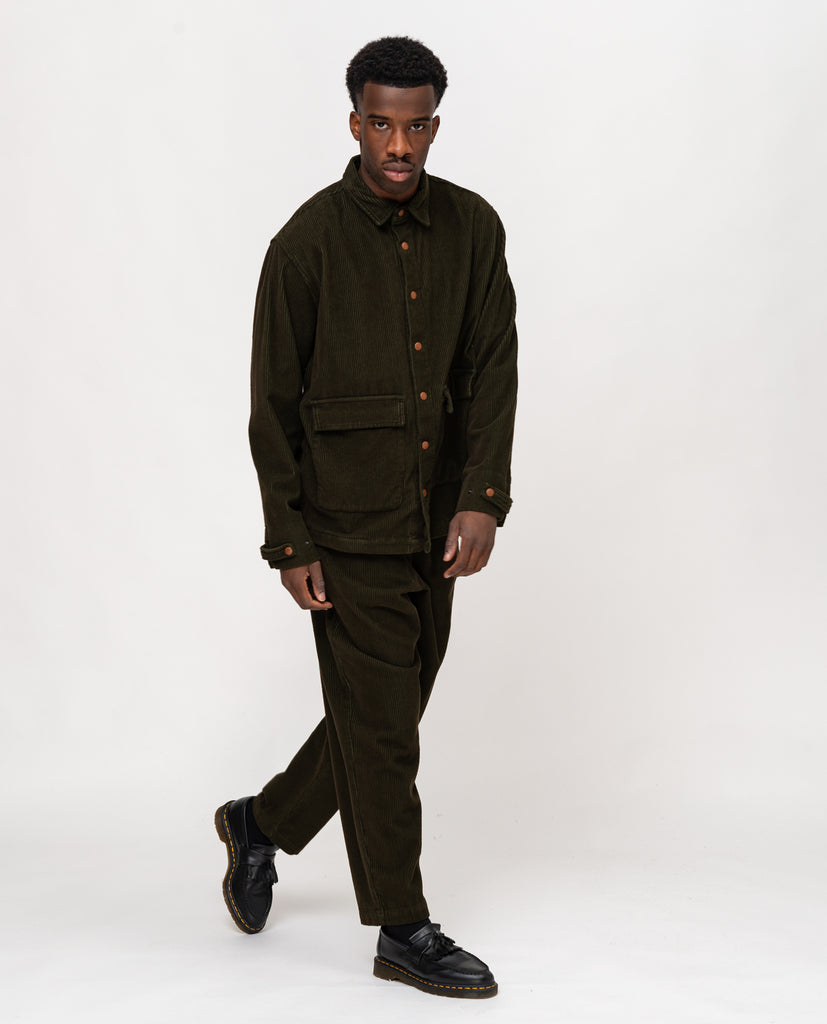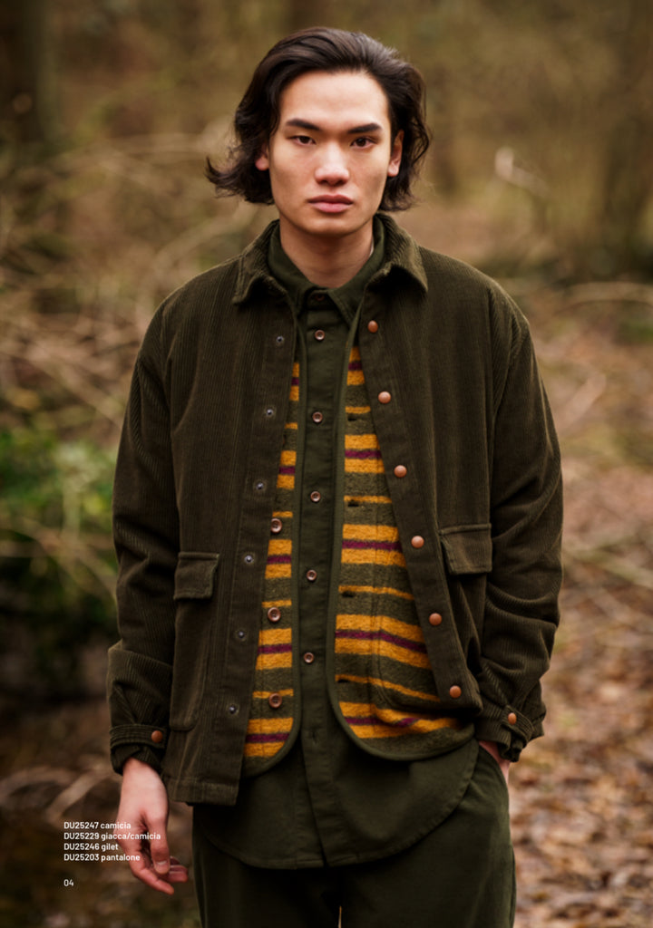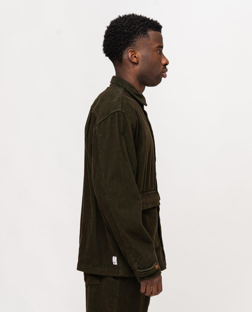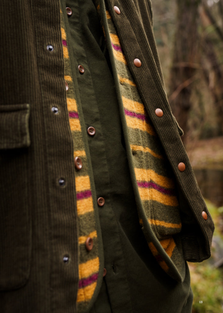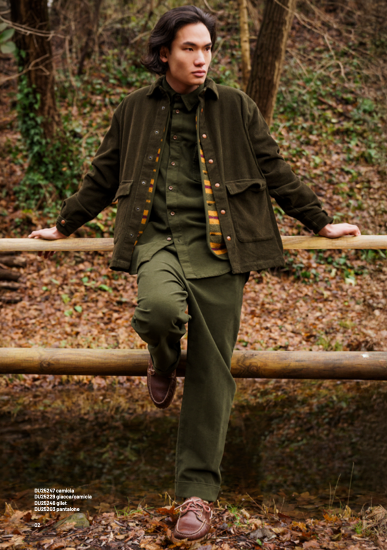 Realizzata con due grandi tasche sul davanti con pattine, carré sul retro e due pinces. I polsi delle maniche sono regolabili grazie a una lunguetta con chiusura con bottoni a pressione.