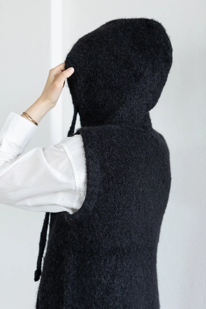 Questo maglione senza maniche si caratterizza per il suo materiale morbido e piacevole, così come per il suo cappuccio che circonda il viso.