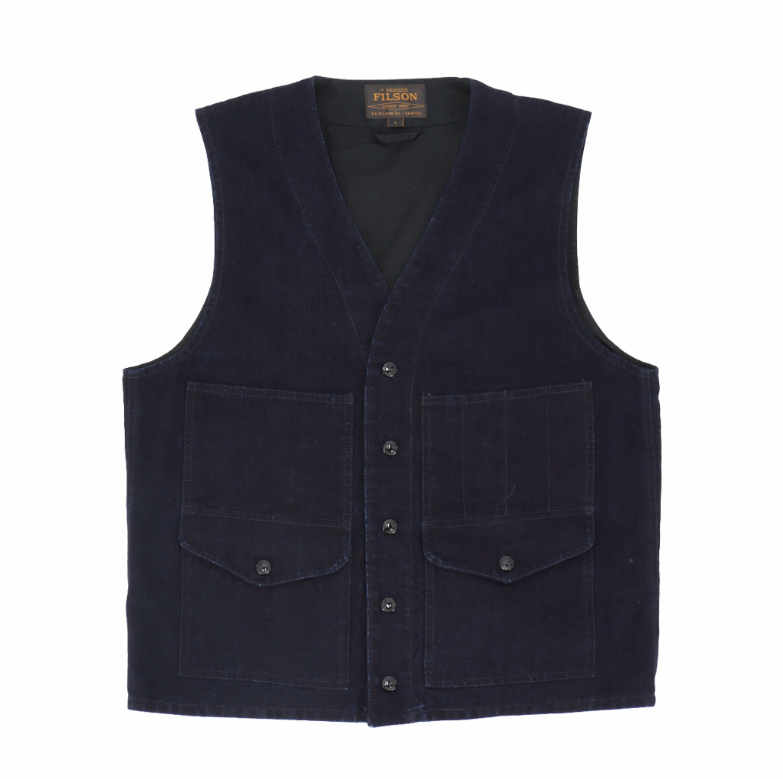 DRY TIN INDIGO VEST, DRY FINISH DENIM