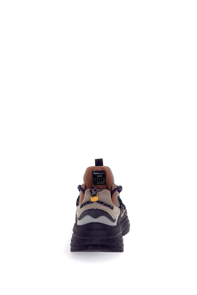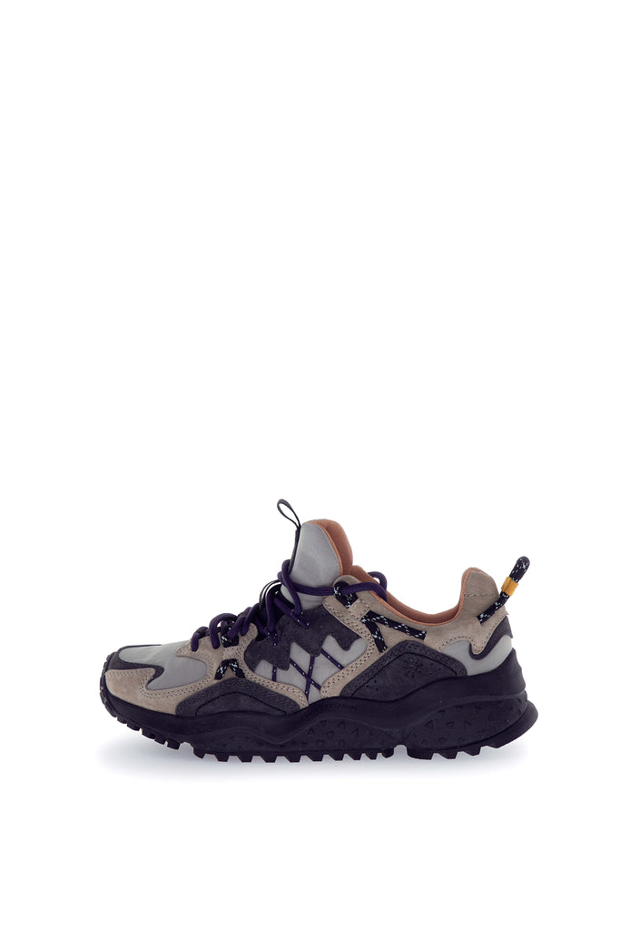 Sneaker in tessuto tecnico con inserti in suede multicolor. Occhielli rinforzati e lacci trek. Soletta interna in sughero naturale antibatterico, fondo in gomma ultra leggera con battistrada dentellato.