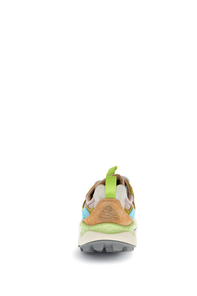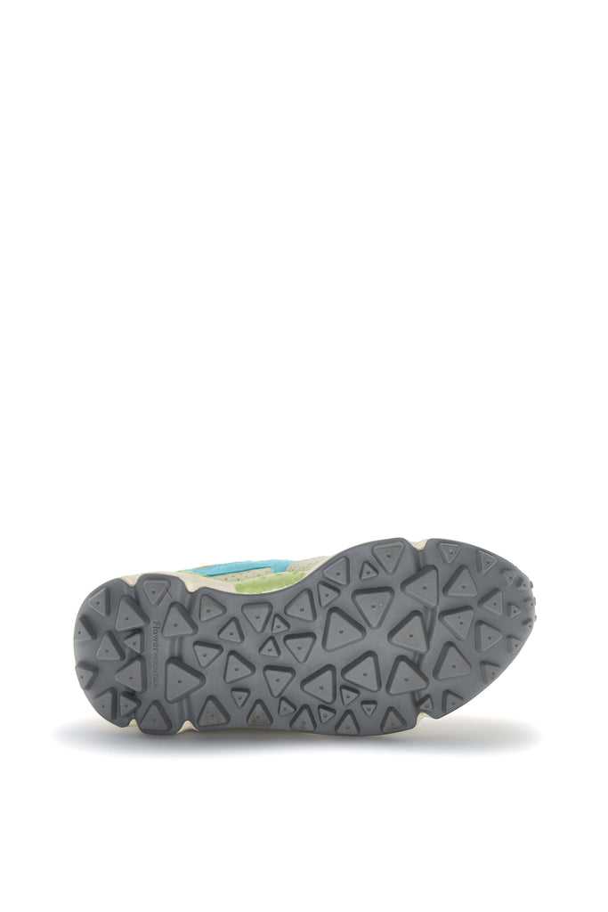 Sneaker in tessuto tecnico con inserti in suede multicolor. Occhielli rinforzati e lacci trek. Soletta interna in sughero naturale antibatterico, fondo in gomma ultra leggera con battistrada dentellato.