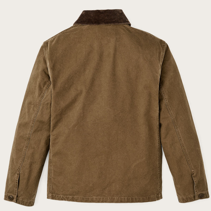 La giacca Outfitter in tela è una barriera per proteggersi da cespugli, spine e trucioli di legno. La robusta tela da 297,7 g è contraddistinta da una trama fitta, che garantisce un’eccellente resistenza al vento e agli strappi. Il lato anteriore e i polsini regolabili sono chiusi con resistenti bottoni antischeggiatura. Replicando una struttura tipica dei cappotti Field vintage, le tasche scaldamani possono fungere anche da patta per le tasche cargo. Colletto foderato in velluto a coste sottili.