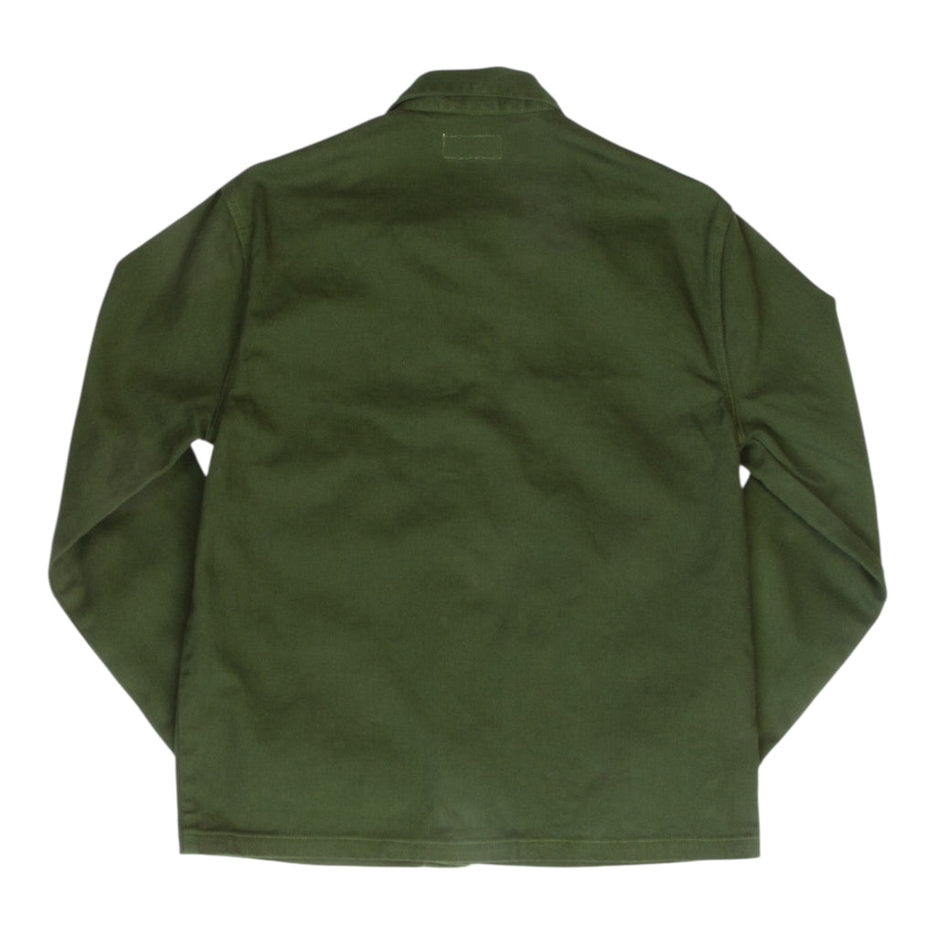 3 oz. U.S. made bull denim. Diverse tasche utili con tasca interna sul lato destro. Indumento tinto in Marin Co. CA. Rivetto extra utilizzato per rafforzare il punto di stress della tasca del giornale. Progettato da Jay Alaimo come parte di una collaborazione del 2011 con Smith+Butler, Brooklyn, NY. Prodotto a San Francisco, California.