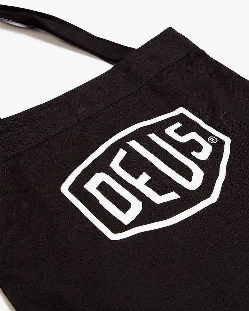 This 100% cotton canvas logo printed tote bag features self fabric shoulder straps and double sided waterbased printed Deus logos.