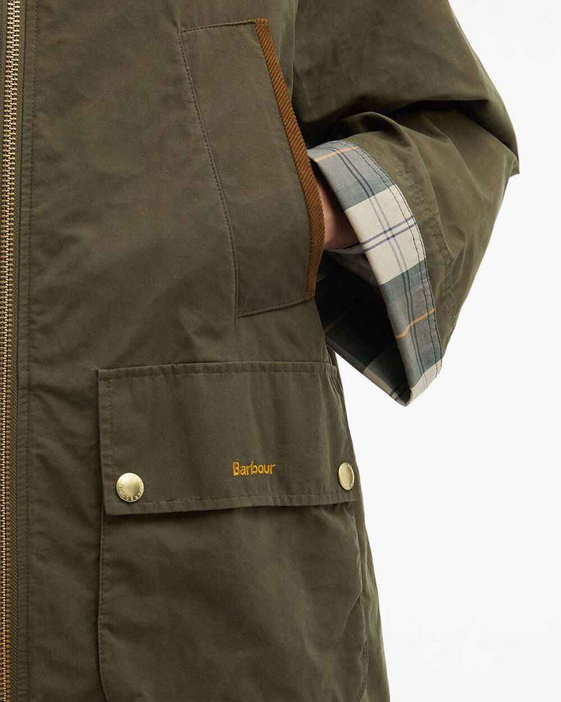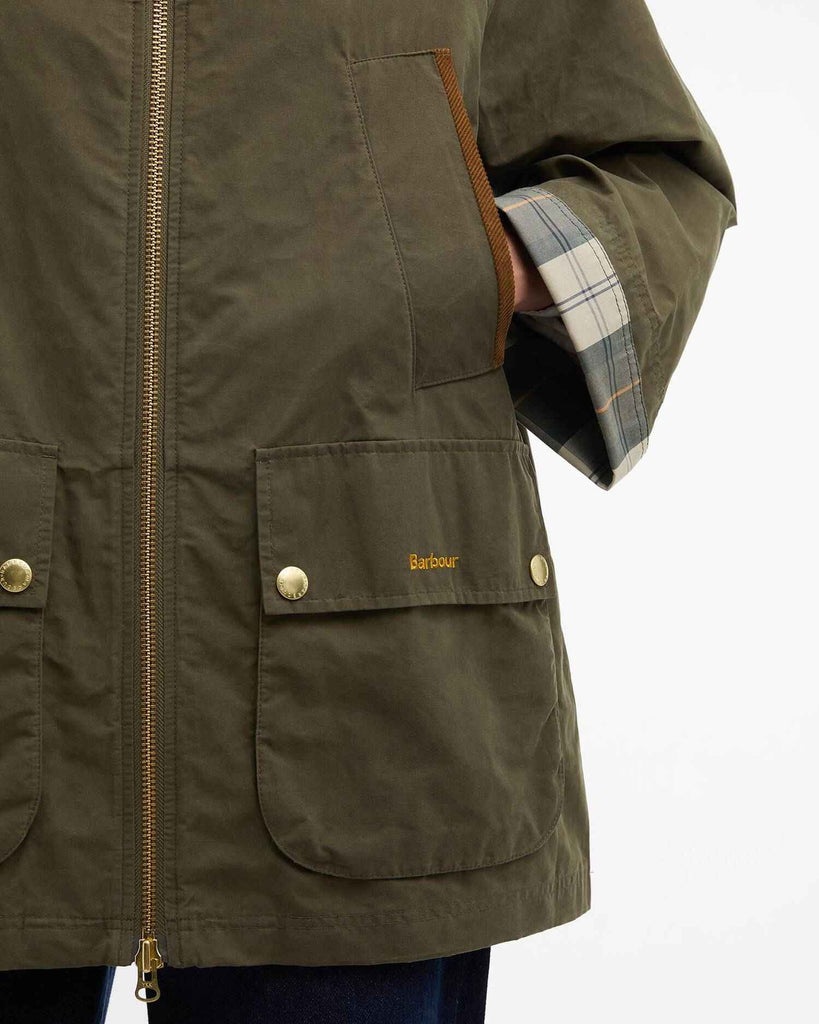 La giacca antipioggia Bedale di Barbour Icons ripropone l'iconico modello Bedale in una comoda silhouette impermeabile. Dotato di tasche scaldamani con finiture a coste sottili, tasche a soffietto tradizionali e colletto a coste sottili a mezzaluna, il capospalla conserva i dettagli del modello heritage originale. L’interno dei polsini in tartan a contrasto aggiunge alla giacca un tocco esclusivo, mentre la fodera in 100% cotone regala un comfort impareggiabile unito all’inconfondibile carattere di Barbour.
