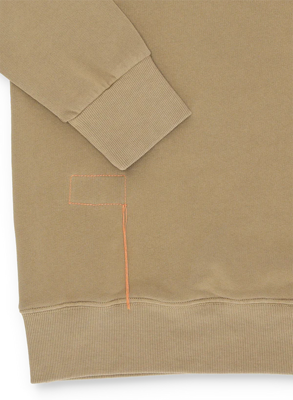 Sul retro, l’iconica impuntura Fortela, realizzata con filo arancione, incarna la filosofia del brand: ogni capo è progettato per durare e invecchiare insieme a chi lo indossa, portando con sé un pezzo di storia rivisitato alla luce dell’ispirazione e dello studio di Alessandro Squarzi