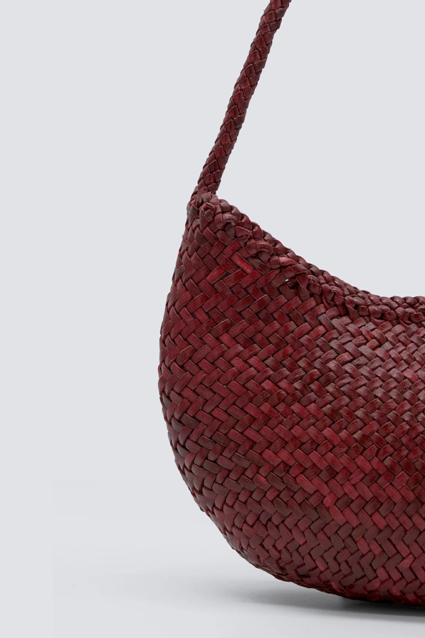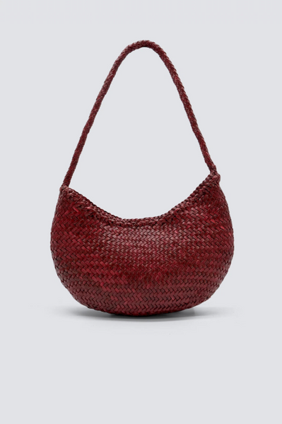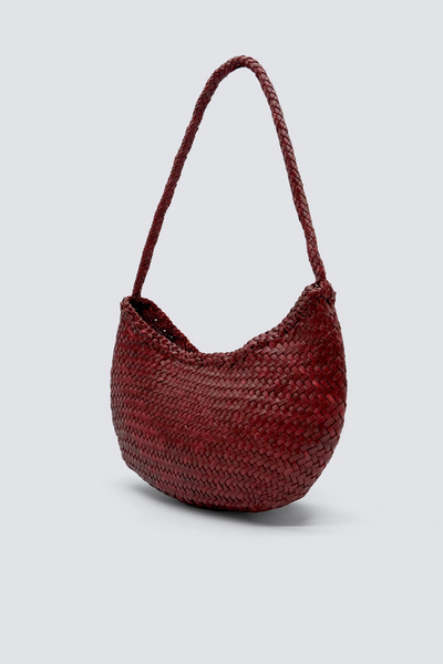 The "Nova Luna" is a compact version of the Luna Mezza, maintaining the unique round and supple design but in a smaller scale, crafted from soft Buffalo Calf leather. This tote features a woven handle that is designed to comfortably fit over your shoulder, making it easy to carry all day. The distinctive shape and size of the Nova Luna make it an ideal choice for those who need a smaller, yet still stylish bag for essential items.