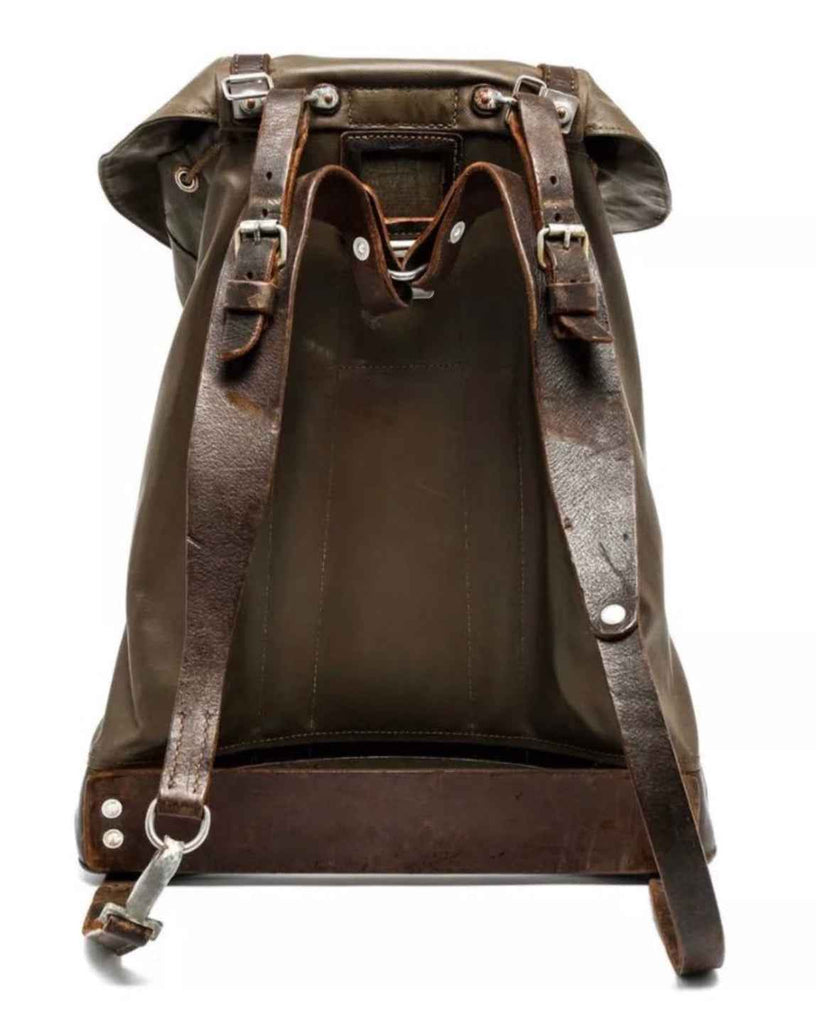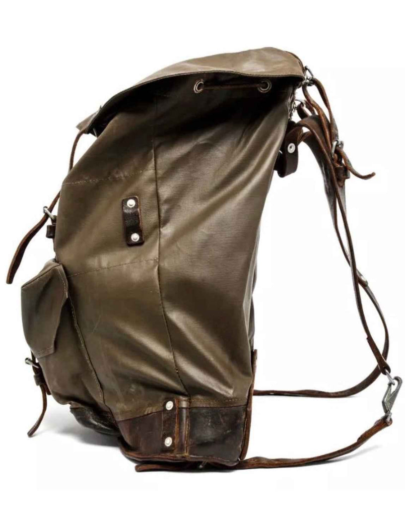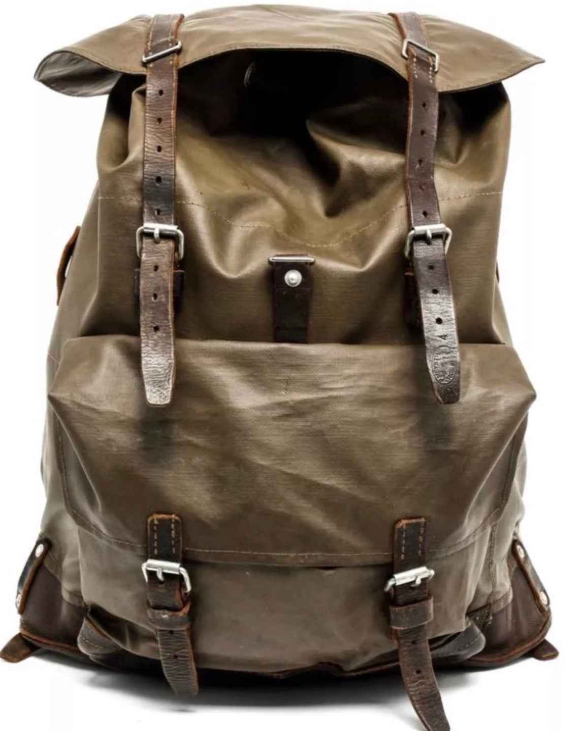 Zaino da montagna originale dell'esercito svizzero 71 con tasca esterna, lacci in pelle tessuto plastificato.